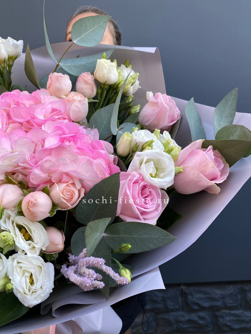 мисти бабблс, диантусы нежных оттенков, эвкалипт, авторское оформление.