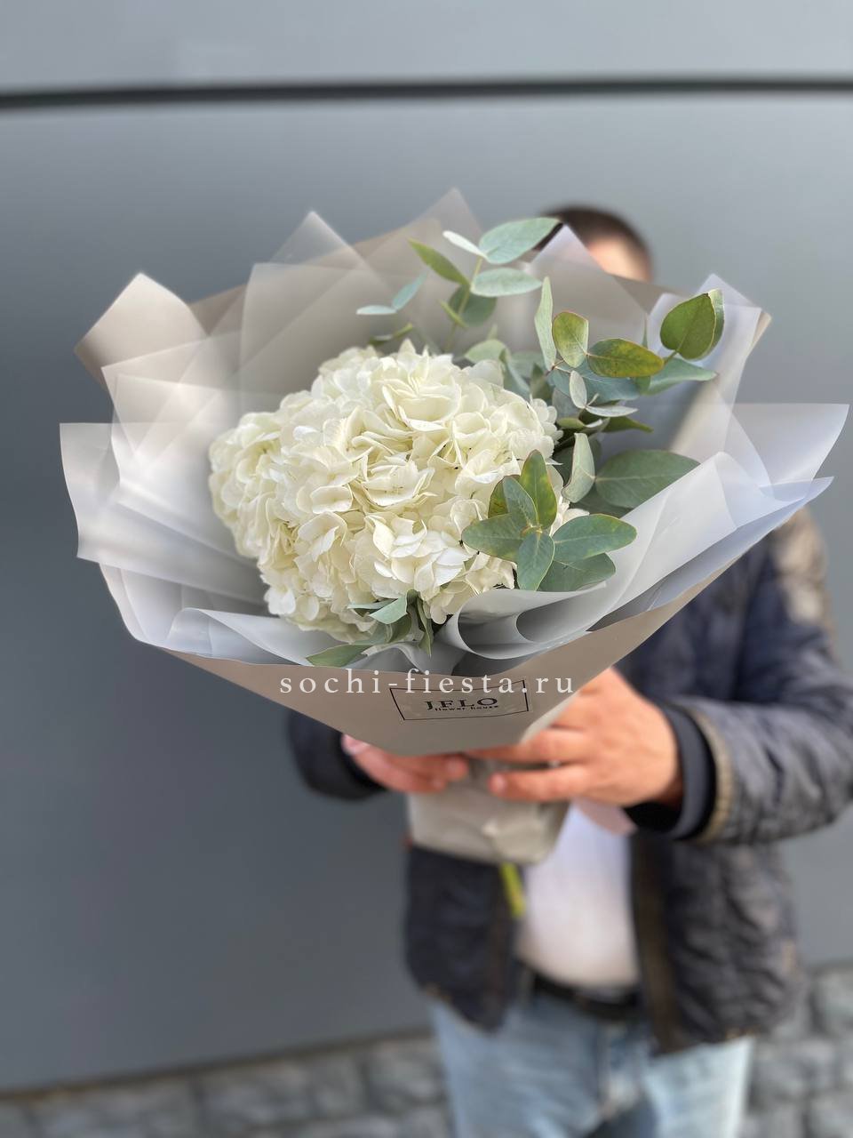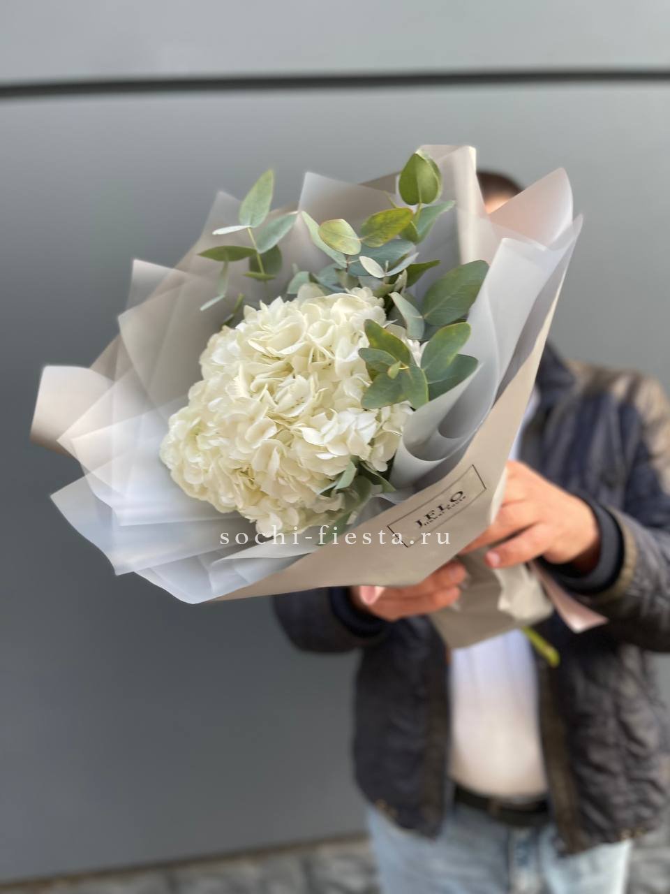 гортензия - 7 шт., лента, дизайнерская упаковка.