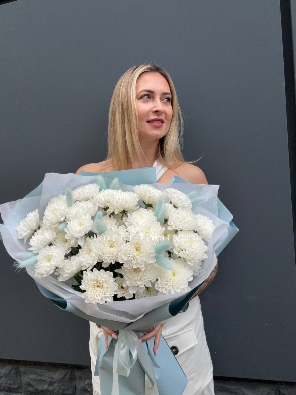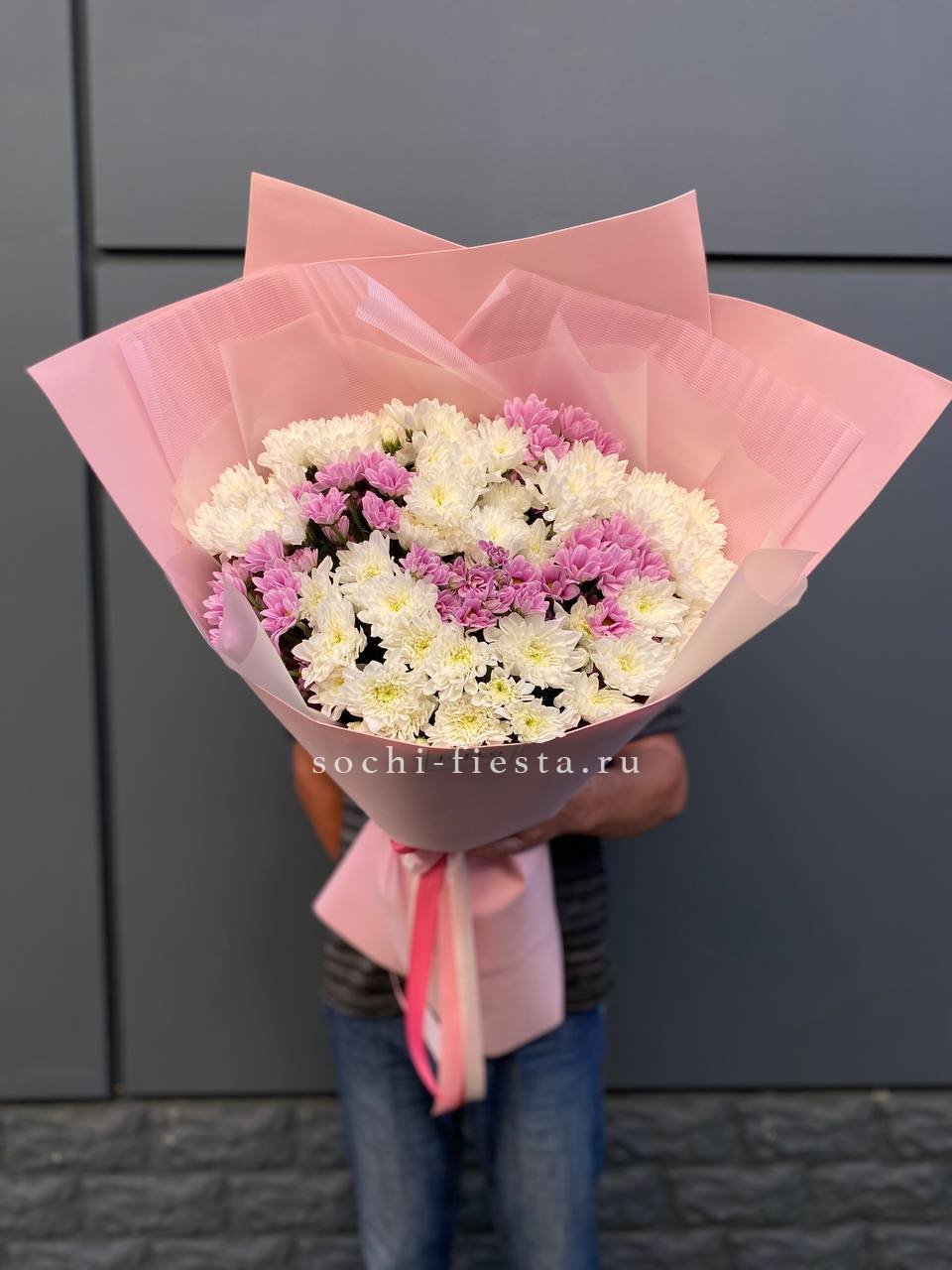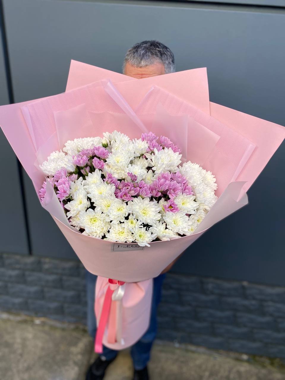 хризантема кустовая - 9 шт., лагурус, пленка,  лента.