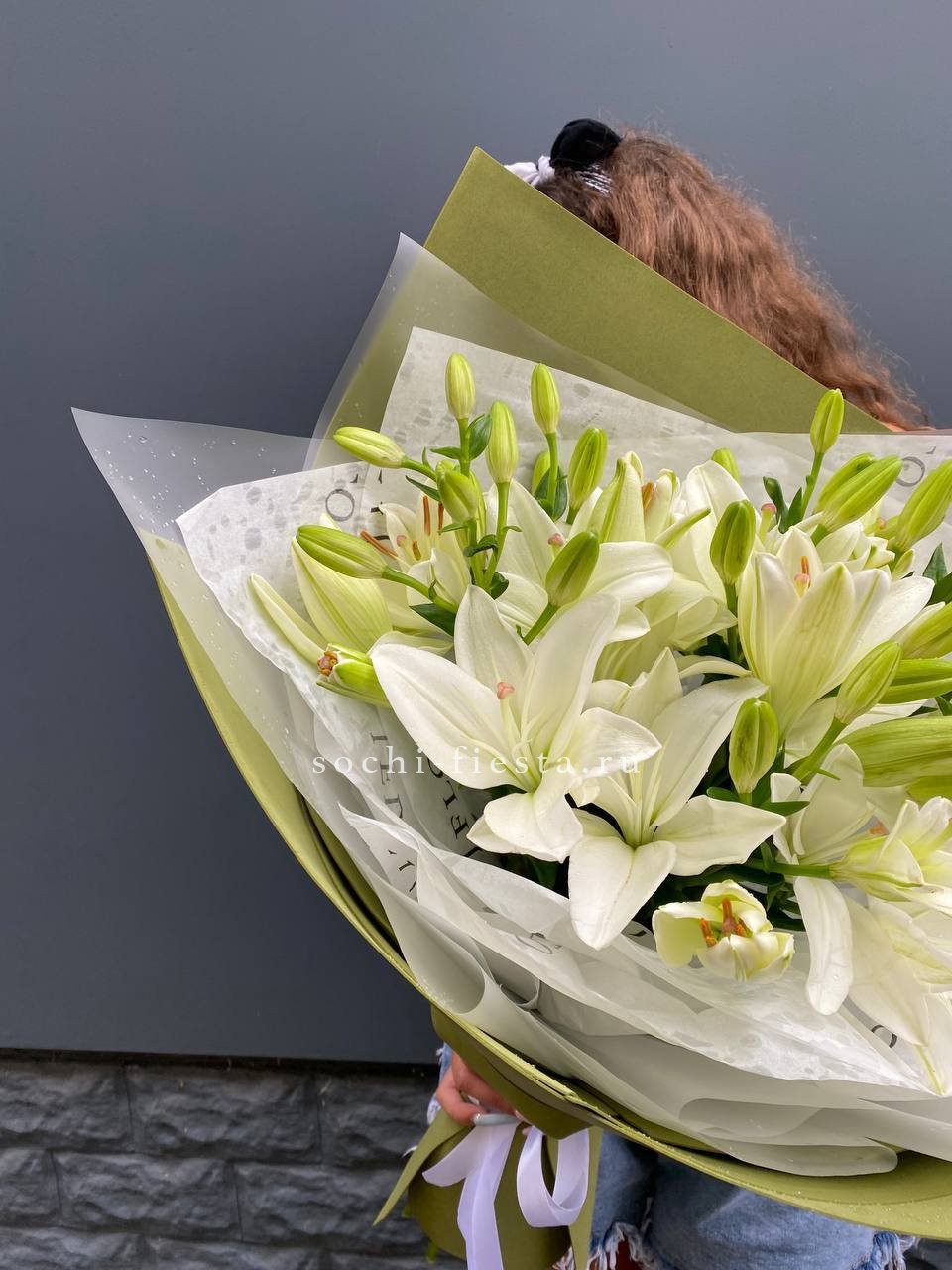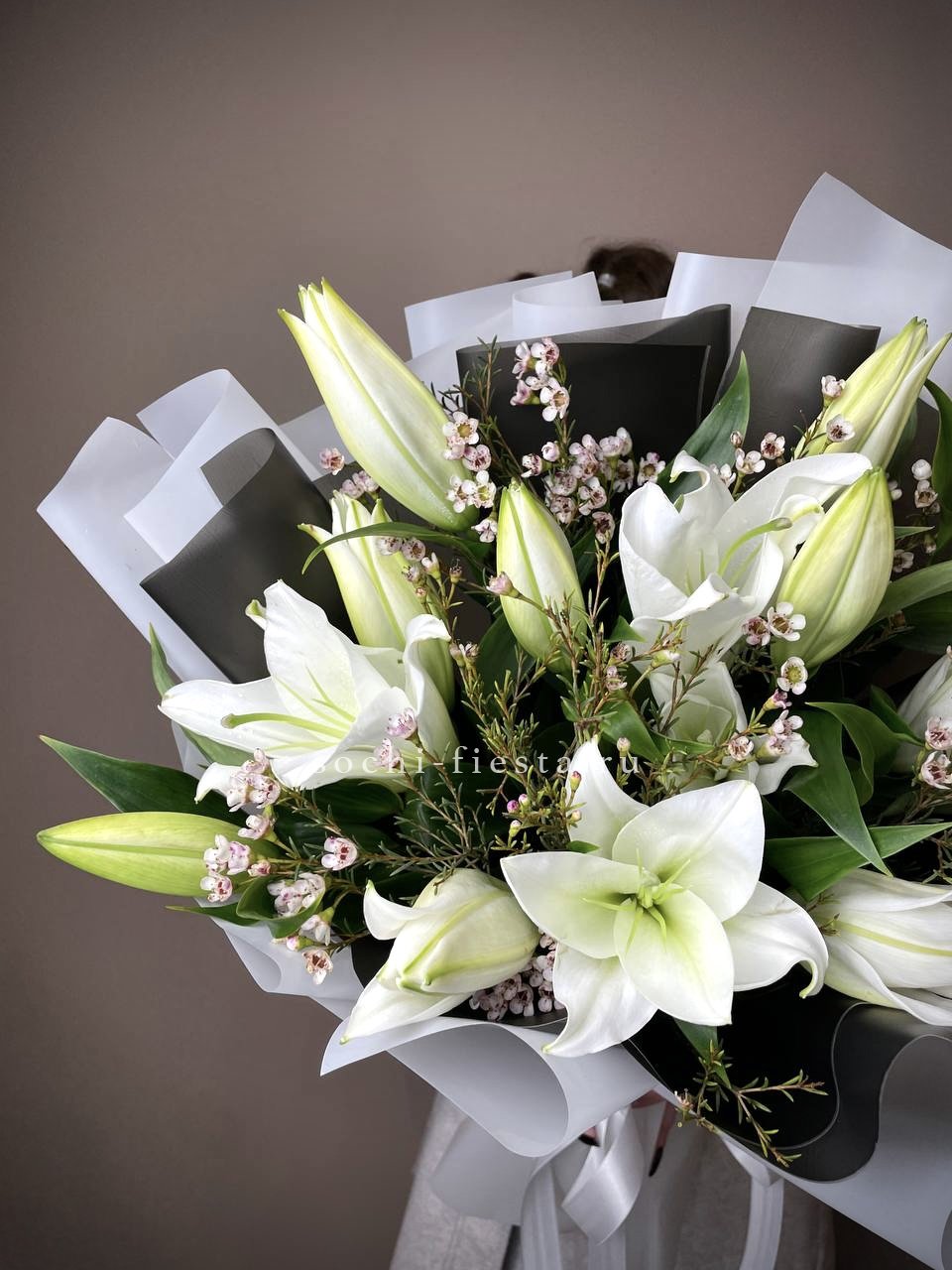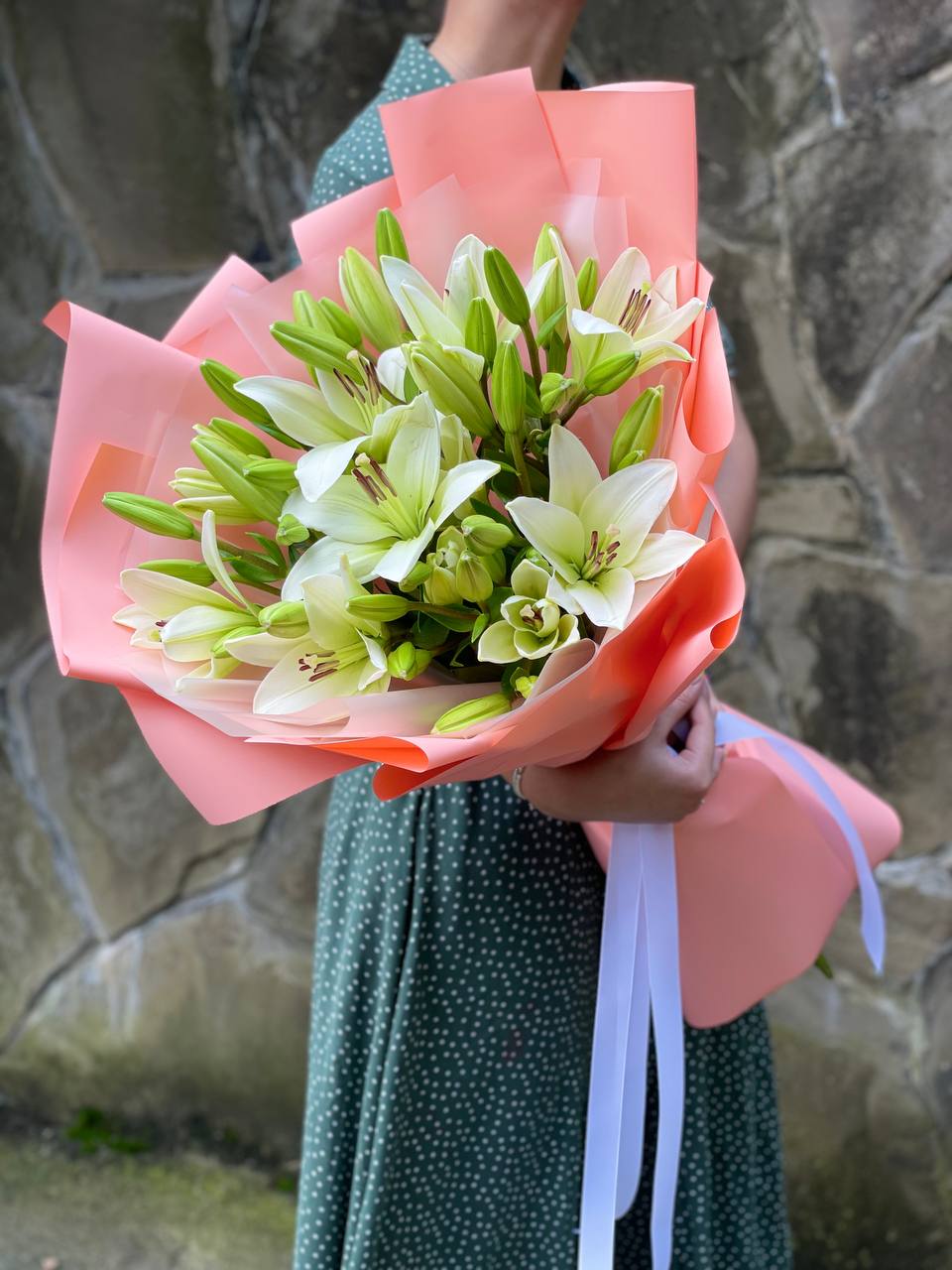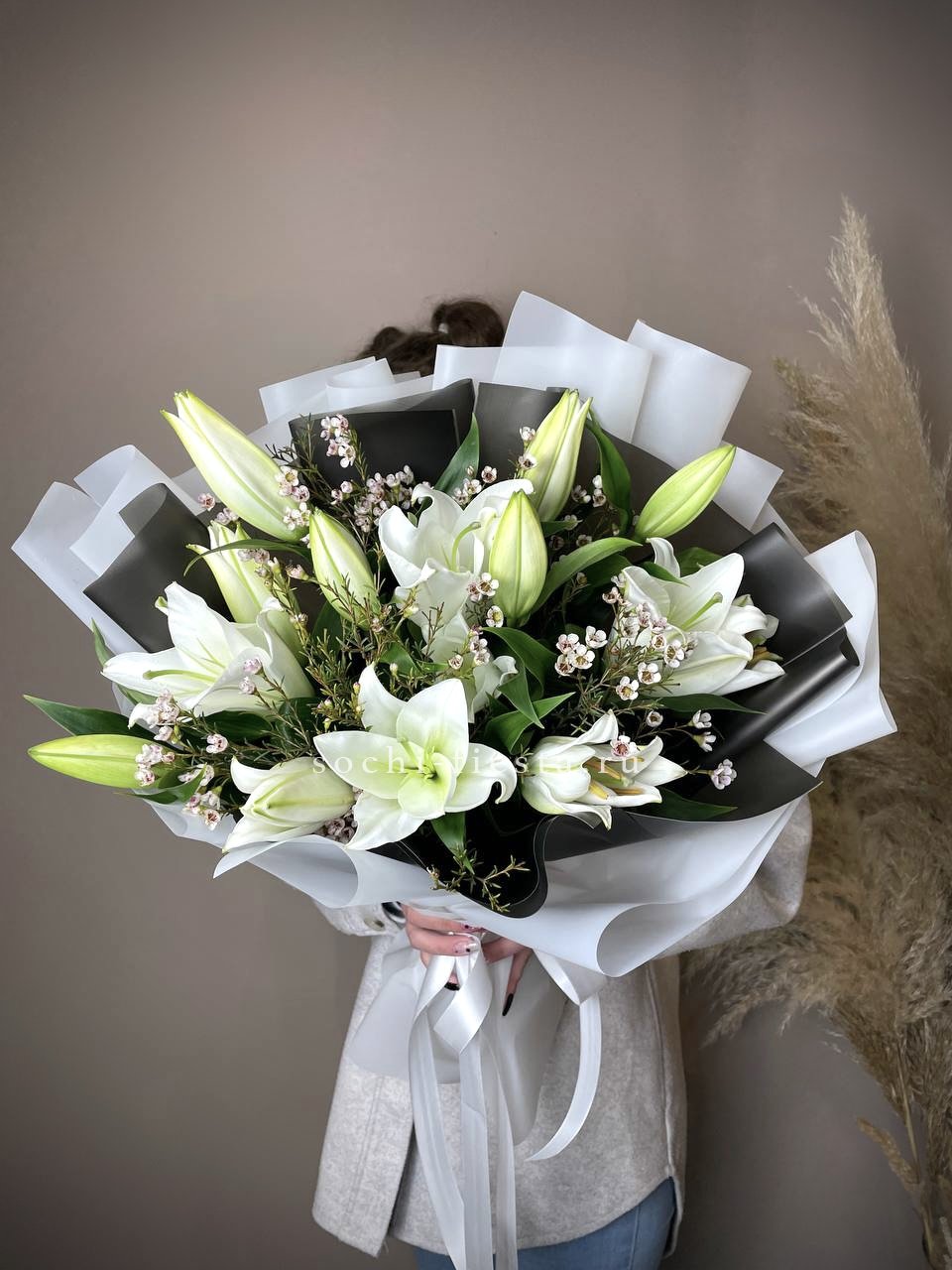 51 лилия, лента, оформление фоамиран (или по согласованию с клиентом).
