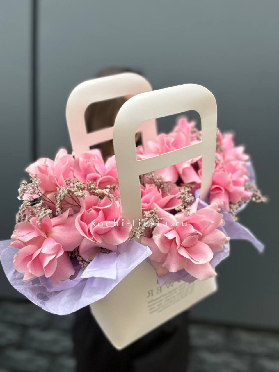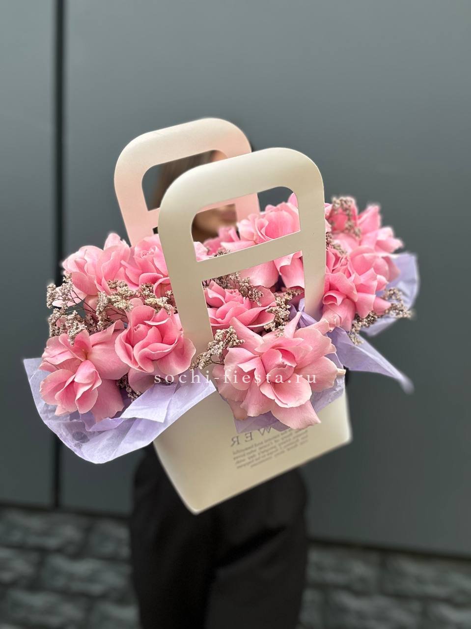 Воплощение изысканности и тренда! Эта стильная композиция в розовой сумочке объединяет в себе яркие цветовые акценты и современный флористический дизайн. Она идеально подойдет для модного образа или в качестве креативного подарка для ценителей необычных решений. Безупречный вкус в каждой детали.