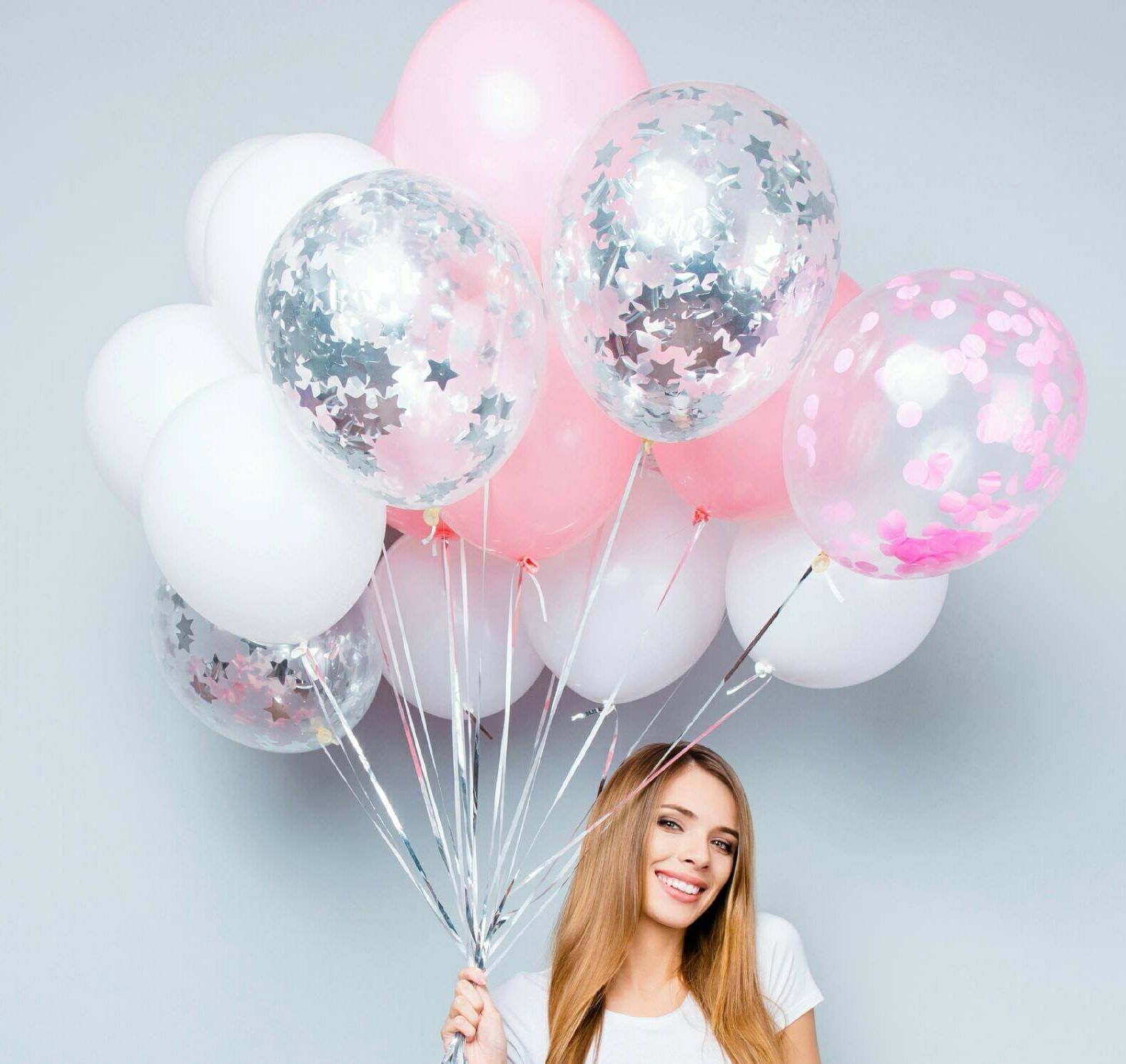 Восемь гелиевых сфер в насыщенной палитре собраны в лёгкое облако. Грузик удерживает композицию на нужной высоте, а яркие оттенки создают праздничное настроение в любом пространстве.