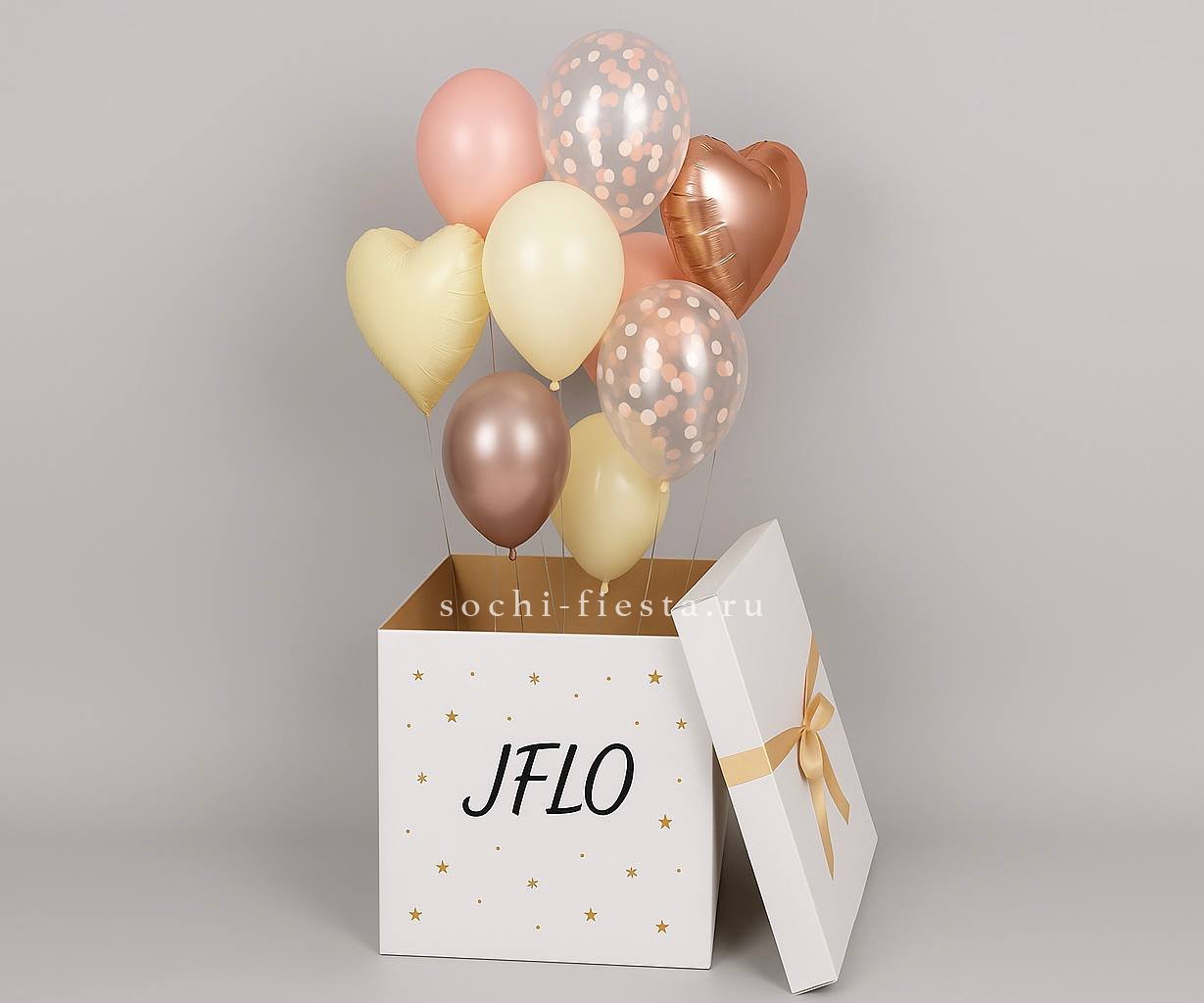 Пятнадцать воздушных сфер в пудровой гамме собраны в лёгкое парящее облако. Золото добавляет тепла, а розовый и беж создают мягкий переход оттенков. Композиция удерживается грузиком и смотрится невесомо.