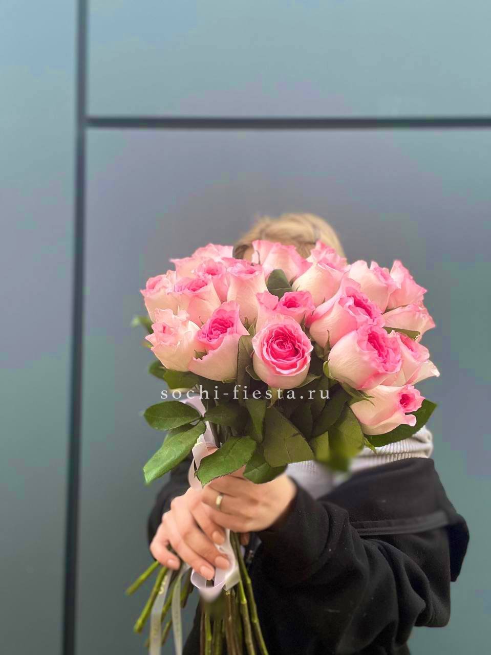 розовые пионовидные розы под ленту.