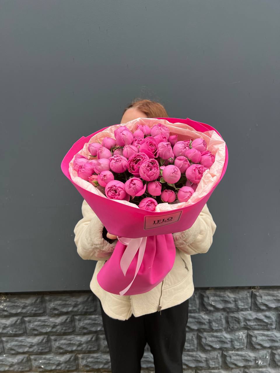 пионовидные розы кустовые мисти баблс в малиновом оформлении.