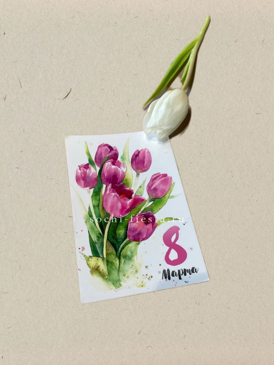 Конечно! К каждому заказу мы бесплатно прикладываем подарочную открытку с вашим текстом. Просто напишите пожелание при оформлении заказа.