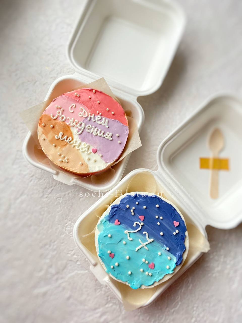 Дизайнерский бенто-торт с ярким декором и авторской надписью. Компактный формат для камерного праздника. Выбор из двух начинок позволяет подобрать вкус под настроение.