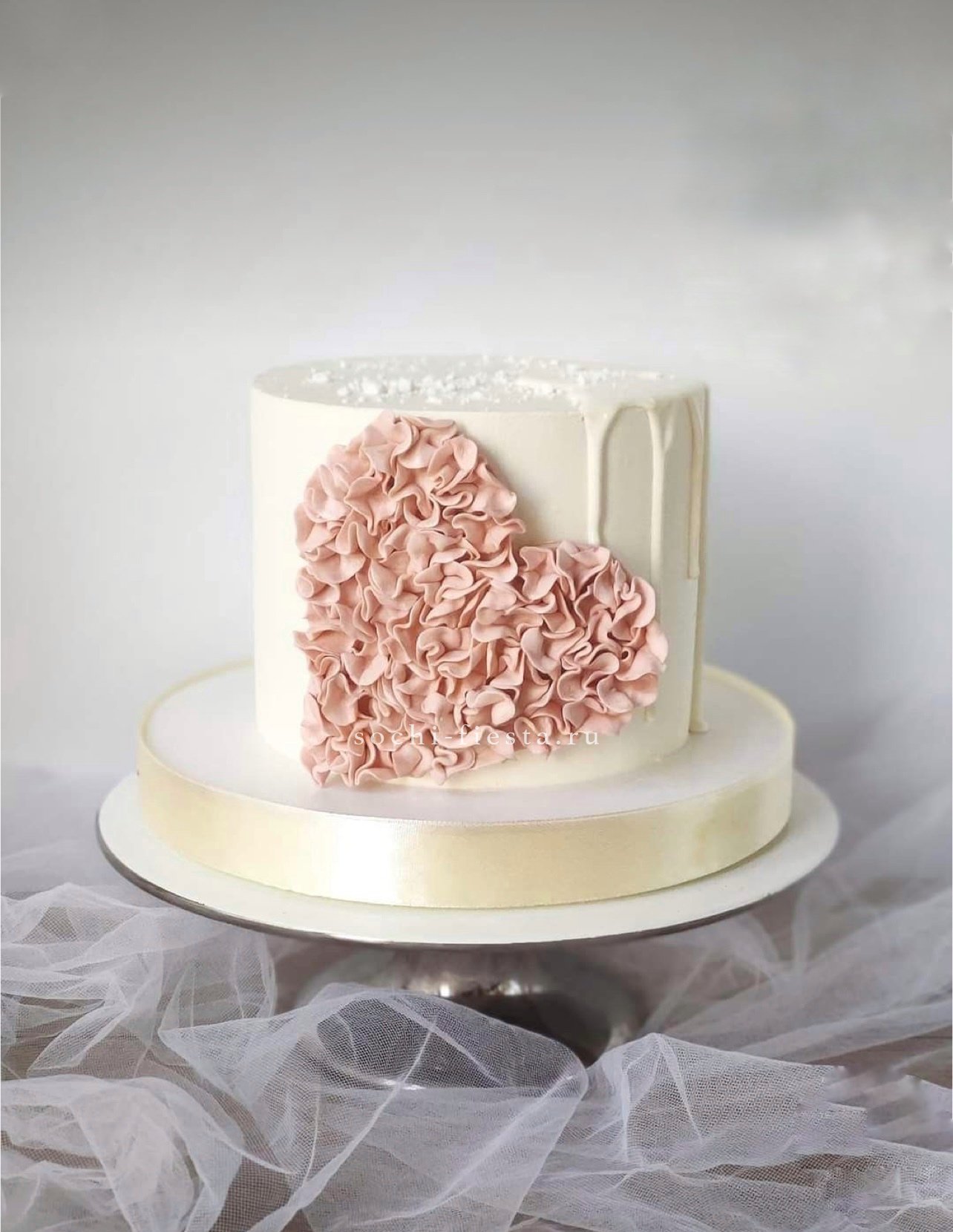 Кремовая фактура с мягкими волнами и надпись в центре создают романтичное настроение. Каждый элемент декора выполнен вручную с заботой о деталях.